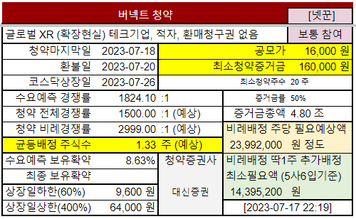 @2023-06-17 #버넥트 (어제공시) 일정연기: "6.26~6.27화" → "7.17~7.18화"