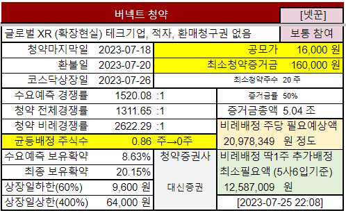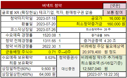 글로벌 XR (확장현실) 테크기업 버넥트 공모주청약 정보입니다.