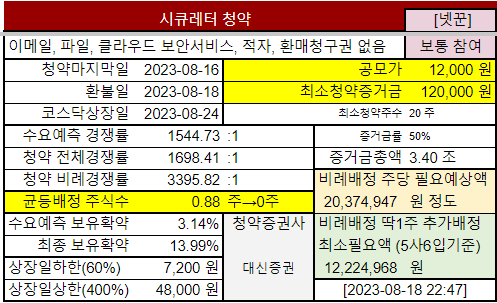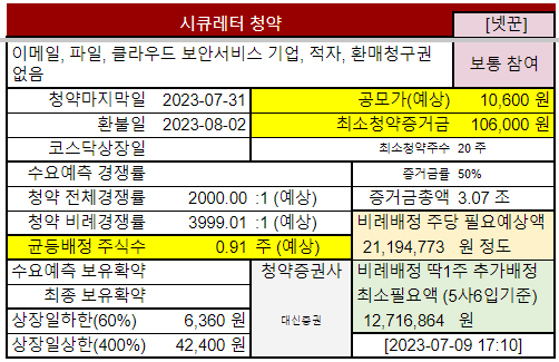 @2023-07-18 #시큐레터 청약일정 연기: "7.28~7.31월" → "8.14~8.16수"