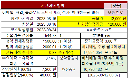 사우디기업 및 여러 국내기업의 이메일, 파일, 클라우드 등의 보안 서비스 기업 #시큐레터 공모주청약 정보입니다.