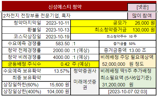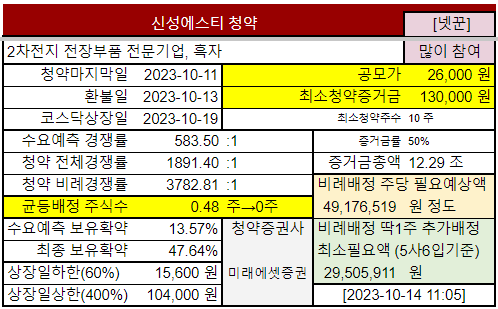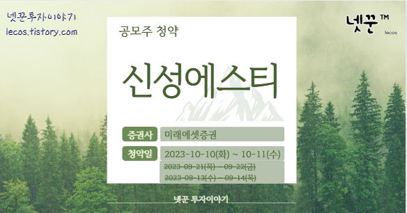 @2023-09-04 #신성에스티 청약일정연기: "9.21~9.22금" → "10.10~10.11수"