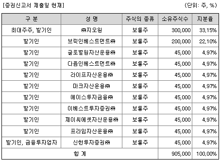 ㆍ발기인: 지오원 (지분 33.15%), 브릭인베스트먼트 (지분 22.10%)