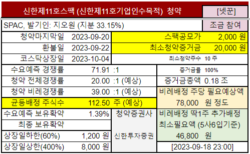 | 신한제11호스팩 | 9.19~ 9.20수 |
