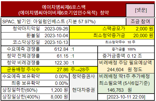 | 에이치엠씨제6호스팩 | 9.25~ 9.26화 |