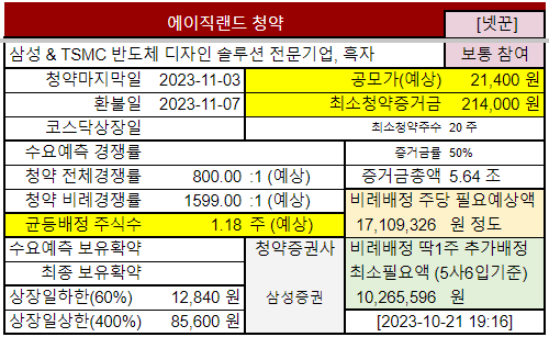 | ● 2023년 10월 공모주청약 ● (1) | 2023.10.15 |