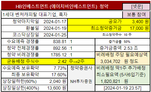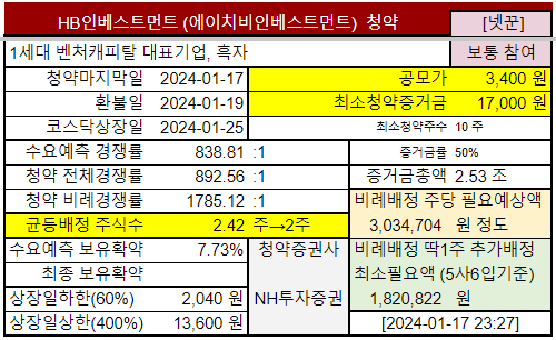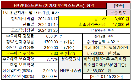 | HB인베스트먼트 | 1.16~ 1.17수 |