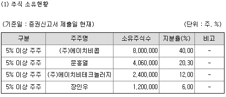 최대주주인 #에이치비콥 (문성준회장 50.7%)의 지분은 40%이고, 문흥렬/황유선/문성준 특수관계인들과 자사주등 포함해 75.5% 경영권지분외에, 다수의 기존주주들이 있는데, 1%미만 소액주주는 6명 2.84% 수준입니다.