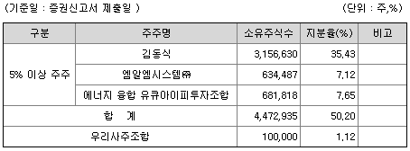 최대주주인 김동식 대표이사 35.43%, 특수관계인+자사주 등 총 51.94% 경영권 지분이 있으며, 많은 투자조합 등 기존주주가 있으며, 1%미만 소액주주는 184명 11.96% 수준입니다. 스톡옵션 12만7천주 있으나 모두 2025년이후 행사가능합니다.