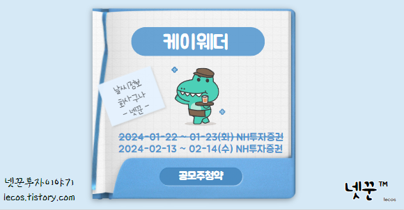 @2024-01-15 #코셈 연기당시 기사에 #케이웨더 마찬가지로 일정연기 있을거라고 했는데 연기됐네요. 청약일정 연기: "1.22~1.23화" → "2.13~2.14수"