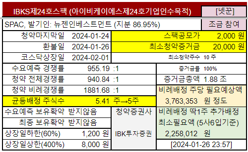 | IBKS제24호스팩 | 1.23~ 1.24수 |