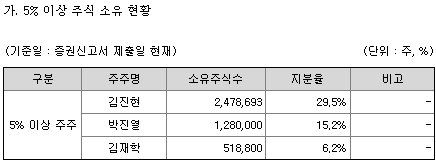 ㆍ유통물량: 43.05% (스톡옵션/상환전환우선주 등 2.45% 포함)