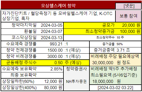 @2024-03-02 2월29일 수요예측결과, 기관경쟁률 993.21:1, 보유확약 2.85%