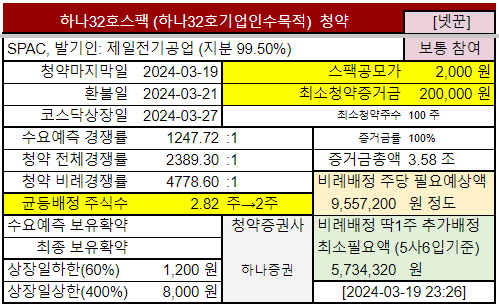 @2023-03-19 청약마감, 전체경쟁률 2389.30:1, 비례경쟁률 4778.60:1, 현재균등배정 2.82주