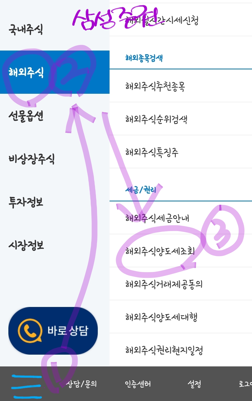 ● 삼성증권 m POP에서 해외주식 양도소득세 조회하기