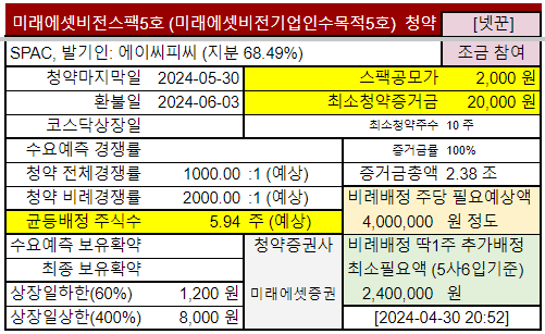@2024-05-15 #미래에셋비전스팩5호 청약 일정연기: "5.29~5.30목" → "6.10~6.11화"