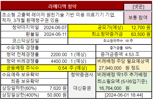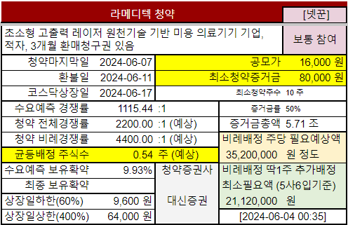 2024-05-30 NEWSIS: 라메디텍, 내달 코스닥 입성…"글로벌 레이저 헬스케어 기업 도약"