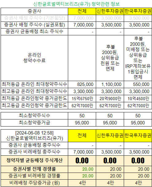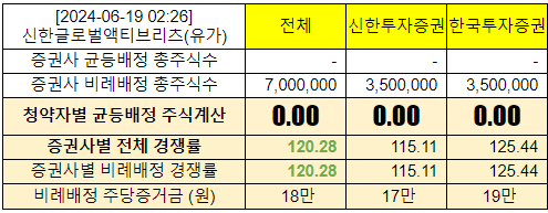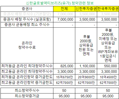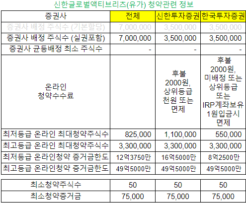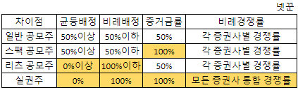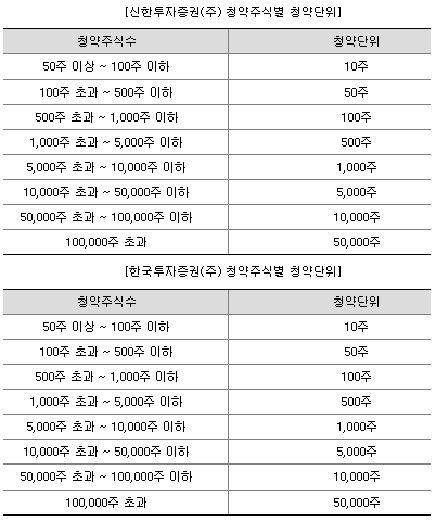 ※ 균등배정이 없고, 신한투자증권 이벤트 등 두 증권사 경쟁률 상황은 비슷할 듯 보여서 비교표는 뺐습니다.