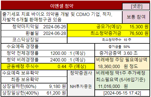 2024-05-29: 이엔셀, 확 낮춘 공모가, 오버행 리스크 줄였다