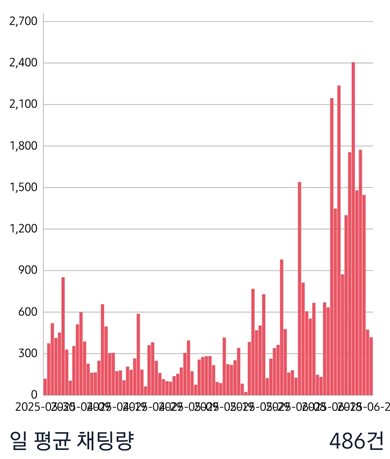 2분기 채팅건수: 총44767건 채팅대화자수 491명, 일평균 486건 최고채팅건수 2025-06-24 2405건