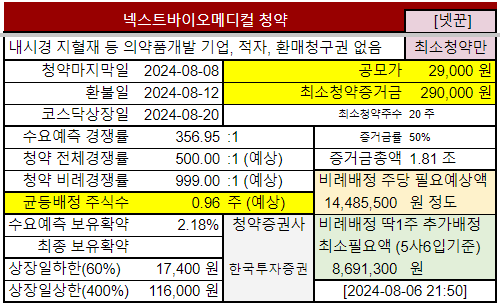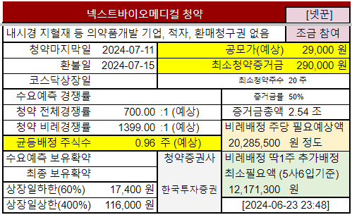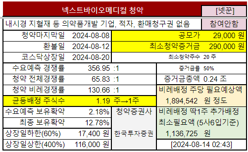 | 넥스트바이오메디컬 | 8.7~ 8.8목 7.25목 7.10~ 7.11목 |