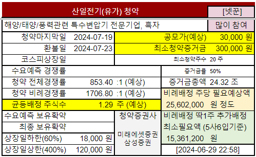 2024-06-25 THE STOCK: [IPO] 특수변압기 호황에 신바람 ‘산일전기’, 코스피 출격…상장밸류 최대 9134억원