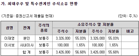 최대주주 이재영 대표이사 55.03% 지분, 이사 포함 경영권 전체지분은 55.68%이고, 이외에 5%이상 소유한 주주는 없습니다. #위드텍 2.3%, #하나증권 2.3%, #LS증권 (이베스트증권) 2.3% 등 여러 투자조합/기관이 있으며, 1%미만 소액주주는 343명 10.51% 수준입니다.