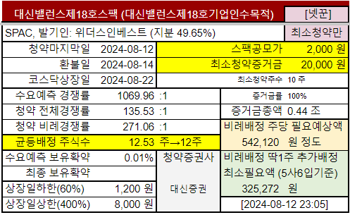 | 대신밸런스제18호스팩 | 8.9~ 8.12월 |