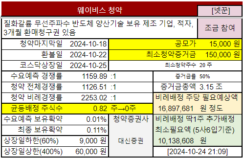 @2024-10-18 청약마감, 전체경쟁률 1,126.51:1, 비례경쟁률 2,253.02:1, 균등배정 0.82 주