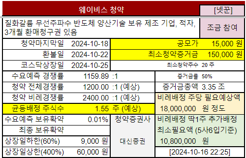 질화갈륨(GaN) 소재의 무선주파수(RF) 반도체 양산기술 보유 제조 기업 #웨이비스 공모주청약 정보입니다.