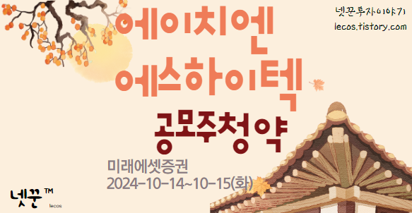 2024-09-15 THE STOCK: [IPO] 에이치엔에스하이텍, 코스닥 이전상장 본격화 ... 내달 공모가 확정, 14~15일 일반 청약